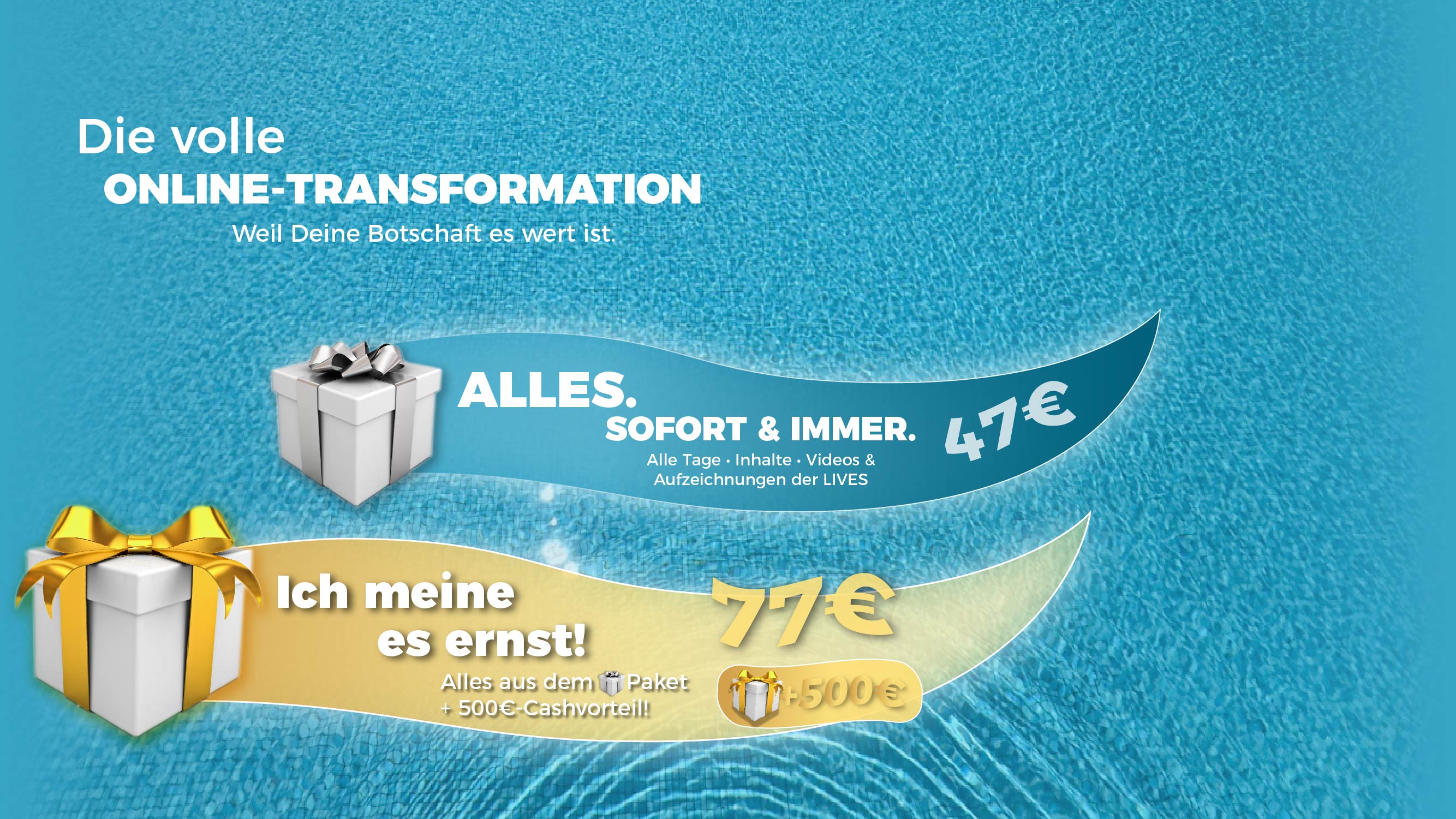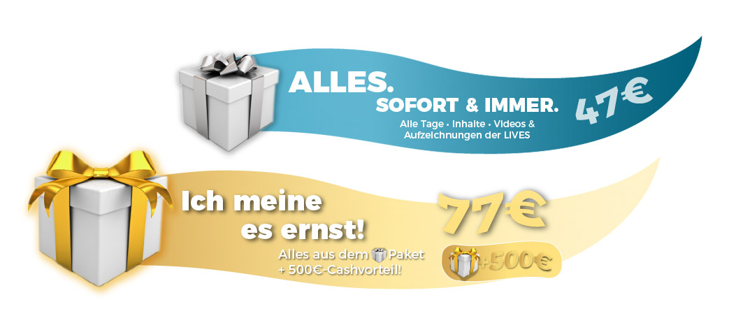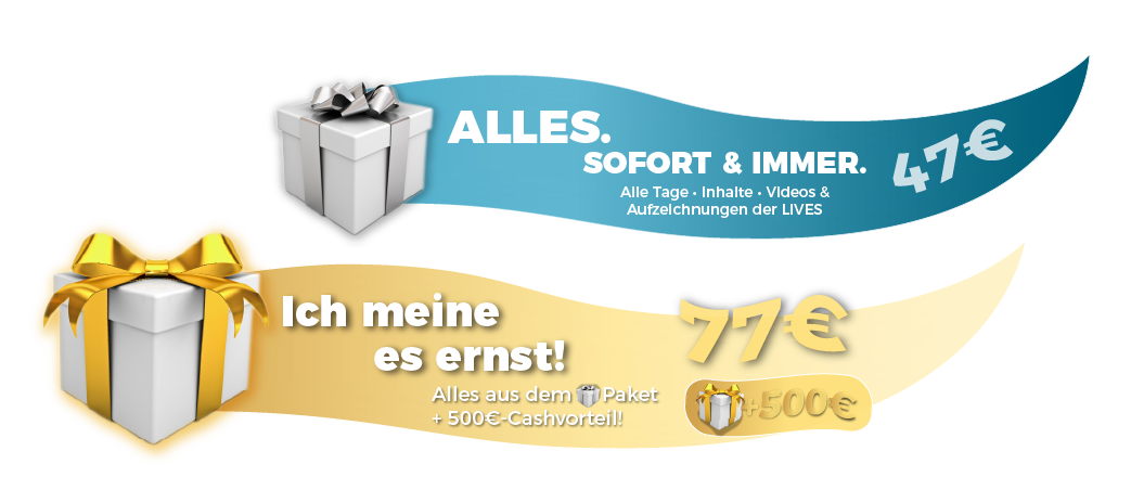 Alle Inhalte • Videos • Audios Du erhältst sofort und dauerthaft Zugang zu allen Inhalten, allen Videos und allen Audios. Sofort &